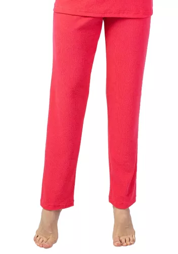 Dámské pyžamo Zofia 1614 značky LEVEZA přináší spojení elegance a pohodlí do Vašeho večerního rituálu. Horní díl v jemném odstínu levandule s dlouhými rukávy působí vzdušně a uvolněně, zatímco dekorativní detaily na přední straně dodávají ženský šarm. Kalhoty s volným střihem a decentním vzorem v ladícím tónu zajišťují maximální komfort při pohybu i odpočinku. Elastický pas se postará o perfektní přizpůsobení každé postavě, což oceníte nejen během spánku, ale i při domácím lenošení.