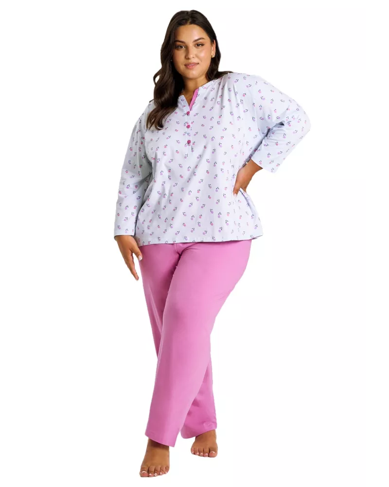 Dámské nadměrné pyžamo Yolanda 3462 značky TARO přináší pohodlí a styl do každého večera. Vrchní díl s dlouhým rukávem a kulatým výstřihem je ozvláštněn jemným vzorem a knoflíky u krku, což vytváří uvolněný vzhled. Světlý modrý top s hravými detaily působí svěže, zatímco růžové kalhoty v rovném střihu krásně kontrastují a zajišťují pocit lehkosti. Materiál z vysoce kvalitní bavlny nebo směsi bavlny s elastanem zaručuje prodyšnost i měkkost na dotek – ideální pro klidný spánek i domácí pohodu. Elastický pas kalhot poskytuje maximální komfort bez omezení pohybu.