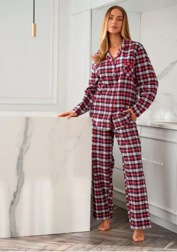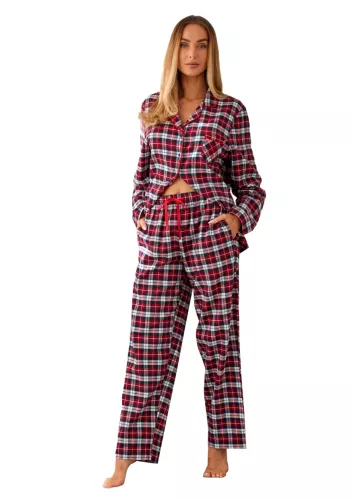 Dámské pyžamo s krátkým rukávem a dlouhými kalhotami s jemnou krajkou.