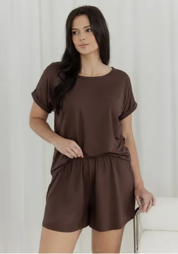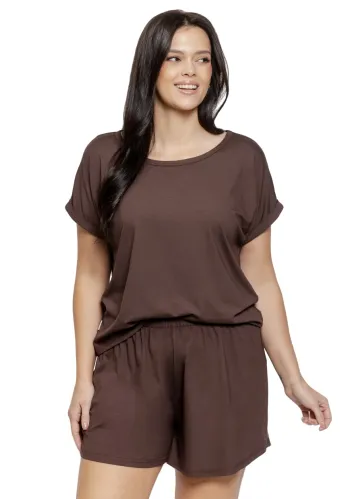 Dámské pyžamo Colette 1729 značky LEVEZA je ztělesněním pohodlí a elegance pro chvíle odpočinku. Jemný světle modrý odstín působí svěže a uklidňujícím dojmem, zatímco roztomilý potisk kočky s nápisem na tričku dodává celému outfitu originální a hravý šmrnc. Volnější střih s krátkými rukávy a kulatým výstřihem nabízí maximální komfort bez omezení pohybu. Šortky se subtilním vzorem, elastickým pasem a nastavitelnou šňůrkou podtrhují pocit lehkosti i během horkých nocí nebo domácího lenošení.