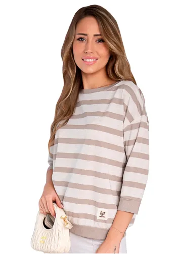 Dámská halenka 1068/34 značky HAJDAN přináší elegantní a uvolněný styl, který oceníte každý den. Pohodlný střih s tříčtvrtečními rukávy jemně kopíruje postavu a zároveň nabízí dostatek volnosti pro maximální komfort. Výrazné vodorovné pruhy v odstínech růžové, vínové a krémové vytvářejí originální vzhled, který zaujme na první pohled. Kulatý výstřih působí žensky a je ideální pro vrstvení i samostatné nošení. Měkký materiál s vysokým podílem viskózy zajišťuje příjemný pocit po celý den – halenka je lehká, vzdušná a vhodná do práce i na volný čas.