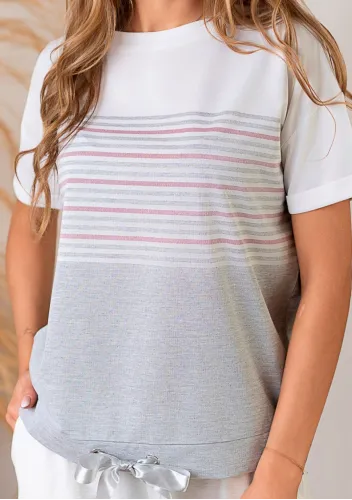 Dámská halenka 1252_03 značky HAJDAN vyniká elegantním střihem, pohodlným materiálem a moderním pruhovaným vzorem pro každodenní styl.