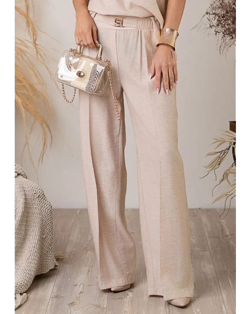 Dámské kalhoty SP013_01 značky HAJDAN představují elegantní základ každého šatníku, který oceníte pro jejich sofistikovaný střih a výjimečné pohodlí. Světlý béžový odstín podtrhuje univerzálnost těchto kalhot, zatímco široké nohavice s vysokým pasem vytvářejí vzdušný efekt a lichotí postavě. Díky jemnému lesku materiálu působí model lehce a zároveň luxusně – ideální volba pro pracovní schůzky i volné chvíle ve městě. Pásek ve stejném tónu zvýrazňuje siluetu a přináší decentní nádech ženskosti.