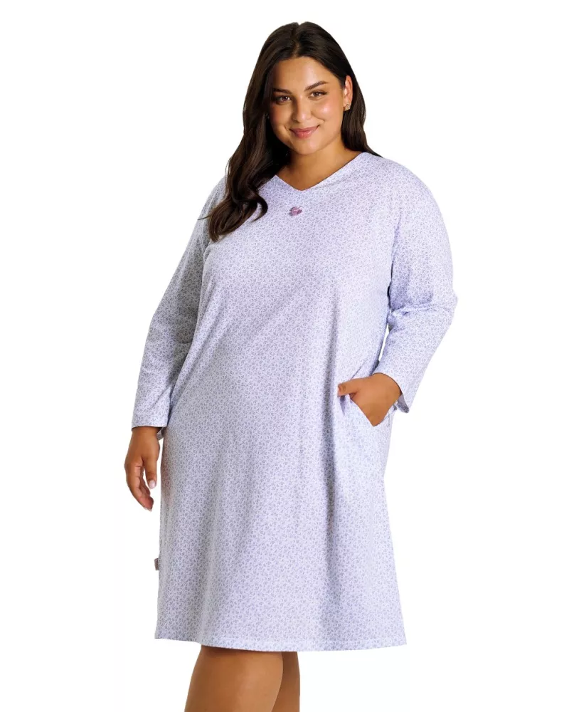 Dámské noční košile Debora 3464 značky TARO přináší elegantní spojení pohodlí a ženského stylu pro Váš domácí odpočinek. Vzdušný střih s výstřihem do V a dlouhými rukávy zajišťuje volnost pohybu i příjemné teplo během chladnějších večerů. Jemný květinový vzor v pastelových tónech působí svěže a decentně, zatímco malá mašlička u výstřihu dodává šatům půvabný detail. Praktické kapsy na bocích oceníte při každodenním nošení doma. Materiál tvoří 100% bavlna, která je známá svou měkkostí, prodyšností a dlouhou životností – ideální pro klidné spaní i pohodové chvíle během dne.
