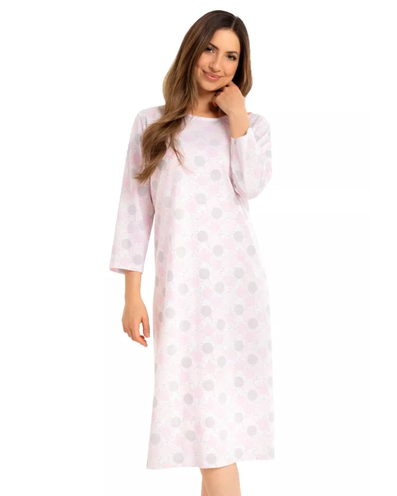 Dámská noční košile 161/51 značky REGINA nabízí elegantní střih, vzdušný komfort a jemný puntíkovaný design pro klidné noci i pohodové ráno.