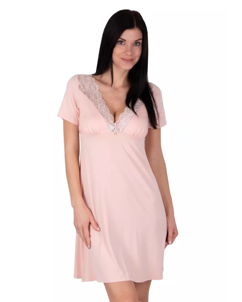 Dámská noční košile Simone s krátkým rukávem ozdobená krajkou Babella.