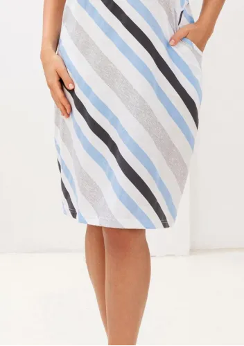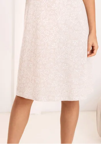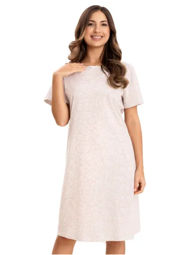 Dámská noční košile Coco 3517 značky TARO přináší radost do každého večera díky svému hravému designu a mimořádnému pohodlí. Lehký, vzdušný materiál zaručuje příjemný pocit na pokožce, zatímco volnější střih s krátkými rukávy a kulatým výstřihem nabízí maximální komfort při odpočinku i spánku. Originální potisk pejska v teplých odstínech hnědé a oranžové dodává této noční košili osobitý šarm, který si okamžitě oblíbíte. Díky délce nad kolena je ideální pro domácí pohodu během teplejších dnů nebo jako stylový doplněk Vašeho relaxačního šatníku.