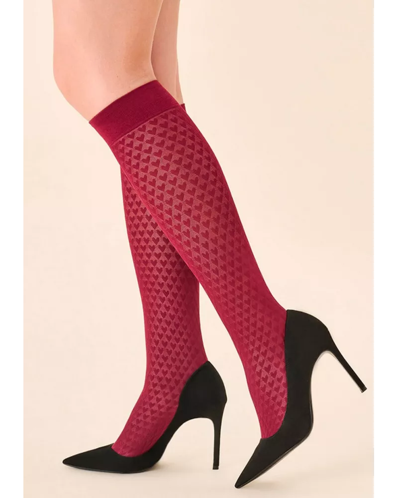 Dámské podkolenky Anya 607 značky GABRIELLA představují spojení elegance a pohodlí, které ocení každá žena hledající stylový doplněk pro chladnější dny. Jemný vzor malých srdíček vytváří jedinečný geometrický efekt, který zaujme na první pohled. Díky hladkému hornímu lemu skvěle drží na noze bez nepříjemného stahování, zatímco materiál s jemným leskem přináší pocit lehkosti i při celodenním nošení.