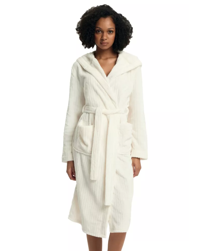 Dámský župan Dionne 43600 značky HENDERSON představuje spojení elegance a pohodlí, které ocení každá žena hledající dokonalý relax po náročném dni. Jeho jemný wellsoft materiál Vás zahalí do příjemného tepla a měkkosti, zatímco decentní krémová barva působí svěže i sofistikovaně. Praktická kapuce chrání před chladem a dlouhé rukávy spolu s délkou ke kolenům zajišťují maximální komfort při domácím odpočinku. Zavazování na pásek umožňuje snadné přizpůsobení postavě, dvě prostorné kapsy poskytují místo pro drobnosti nebo zahřátí rukou. Povrch županu zdobí nenápadné žebrování, které dodává celku lehkost bez rušivých vzorů.