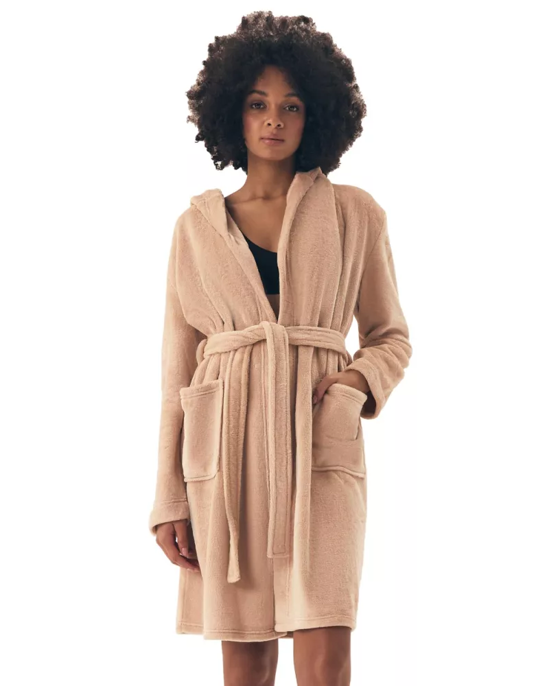 Dámský župan Bird 42877/08 značky HENDERSON představuje spojení elegantního stylu a maximálního pohodlí. Jeho jemný béžový odstín působí hřejivě a příjemně, zatímco volnější střih s délkou ke kolenům zajišťuje svobodu pohybu i pocit lehkosti. Dlouhé, mírně rozšířené rukávy přispívají k celkovému komfortu při každodenním nošení. Praktická kapuce dodává na útulnosti a ochrání před chladem v chladnějších dnech.