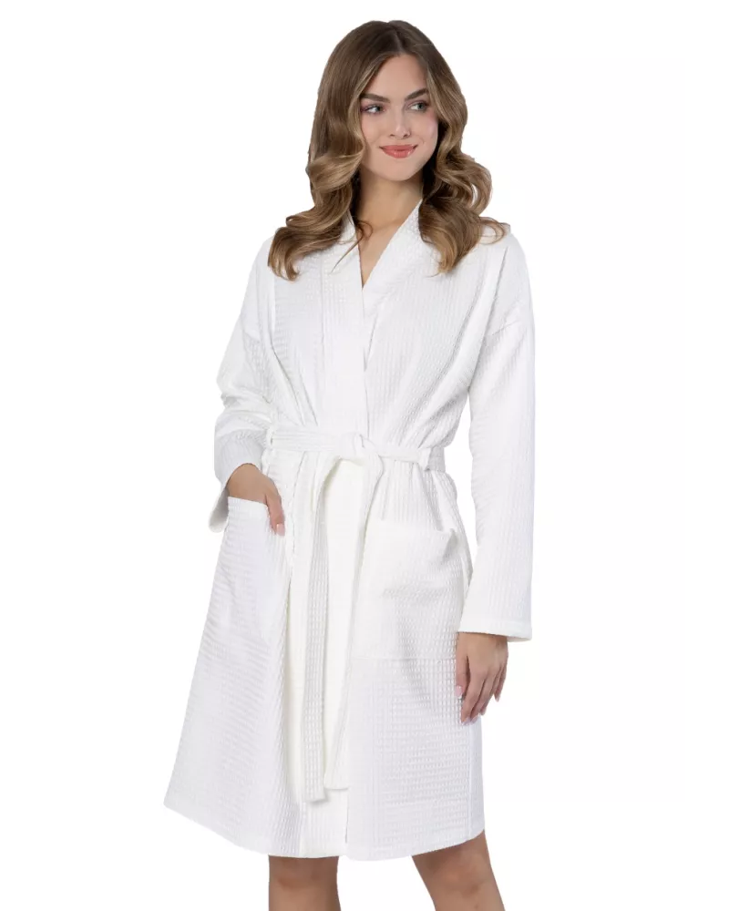 Praktické zavazování v pase umožňuje snadné přizpůsobení postavě, dlouhé rukávy zajišťují volnost pohybu a boční kapsy nabízejí prostor pro drobnosti či zahřátí rukou. Díky délce ke kolenům je tento župan ideální jak po koupeli, tak pro chvíle relaxace doma nebo ve wellness prostředí.