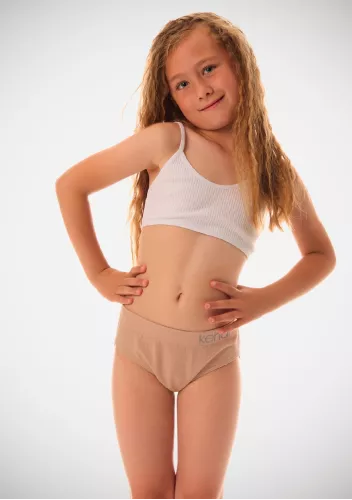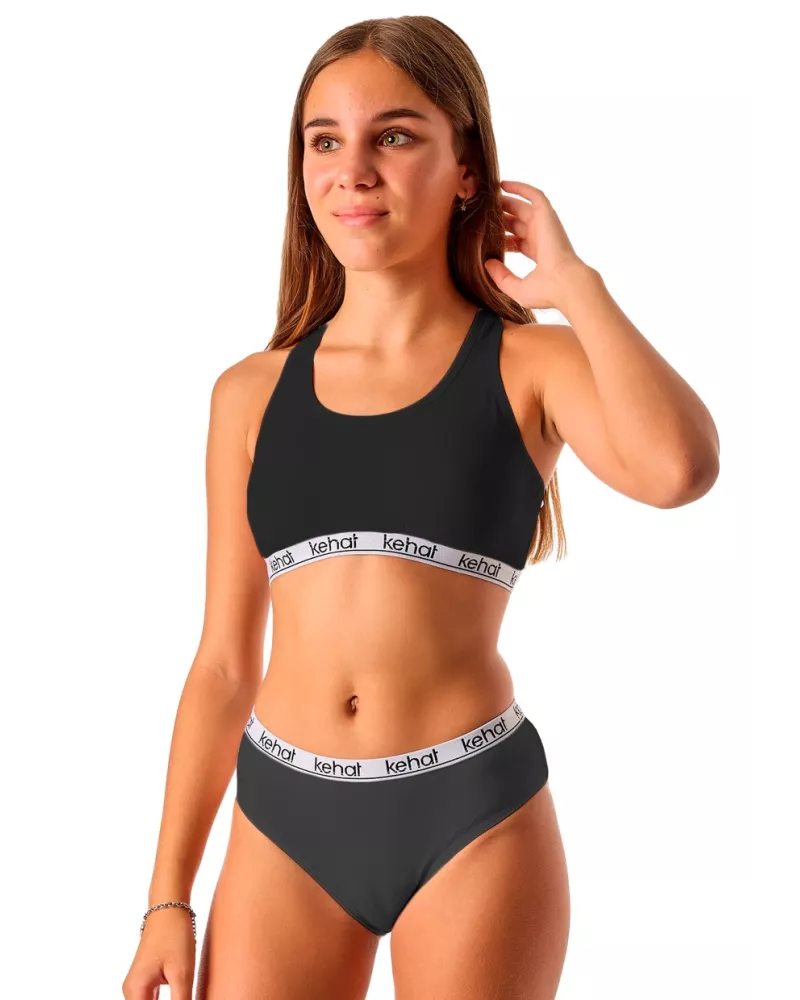 Dívčí set kalhotky + top 383 značky KEHAT přináší spojení elegance a pohodlí pro mladé slečny, které ocení jemnost i styl. Tento dvoudílný set je navržen s důrazem na komfort a volnost pohybu – sportovní top se širokými ramínky a kulatým výstřihem doplňují klasické kalhotky s dostatečným krytím. Oba díly zdobí kontrastní guma s výrazným nápisem KEHAT, která dodává moderní sportovní vzhled bez zbytečných ozdob.