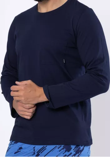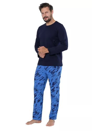Pánské vzorované pyžamo s dlouhým rukávem a jednobarevnými kalhotami Big Carl 1003/02 Hotberg.