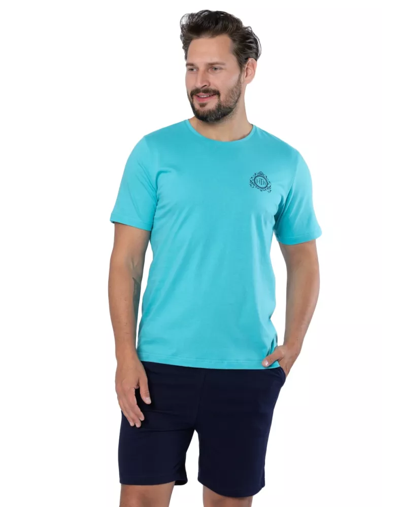 Pánské pyžamo Franek 1687 značky HOTBERG představuje ideální volbu pro muže, kteří hledají spojení pohodlí a stylu během odpočinku. Pyžamo vyniká svěžím designem s krátkými kalhotami a obrázkovým motivem na tričku, což přináší moderní vzhled i pocit lehkosti. Díky použití 100% bavlny je materiál příjemný na dotek, prodyšný a zajišťuje maximální komfort po celou noc. Kulatý výstřih podtrhuje klasický charakter tohoto modelu, zatímco střih umožňuje volnost pohybu bez omezení.
