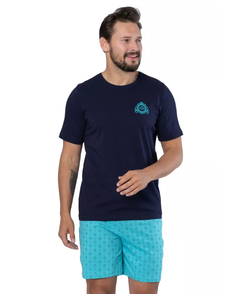 Pánské pyžamo Gor 1690 značky HOTBERG představuje spojení pohodlí a stylu, které ocení každý muž hledající kvalitní noční prádlo. Lehký materiál z čisté bavlny Vás zahalí do příjemného pocitu lehkosti a zajistí volnost pohybu po celou noc. Pyžamo je navrženo s krátkými kalhotami, což je ideální volba pro teplejší období nebo pro ty, kdo dávají přednost vzdušnějšímu spaní. Horní díl zdobí decentní obrázek, který dodává modelu moderní vzhled bez zbytečné okázalosti. Kulatý výstřih podtrhuje elegantní střih trička.