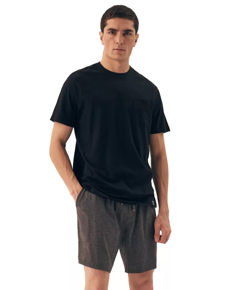Pánské pyžamo Mick 43032/99 značky HENDERSON přináší spojení jednoduchosti a pohodlí, které ocení každý muž hledající kvalitní noční prádlo. Černé tričko s krátkými rukávy a kulatým výstřihem působí elegantně, zatímco malá kapsa na hrudi dodává praktický detail. Volné šortky v tmavě šedém odstínu zajišťují volnost pohybu i maximální komfort během spánku nebo domácího odpočinku. Díky použití 100% bavlny je materiál příjemný na dotek, prodyšný a vhodný i pro citlivou pokožku.