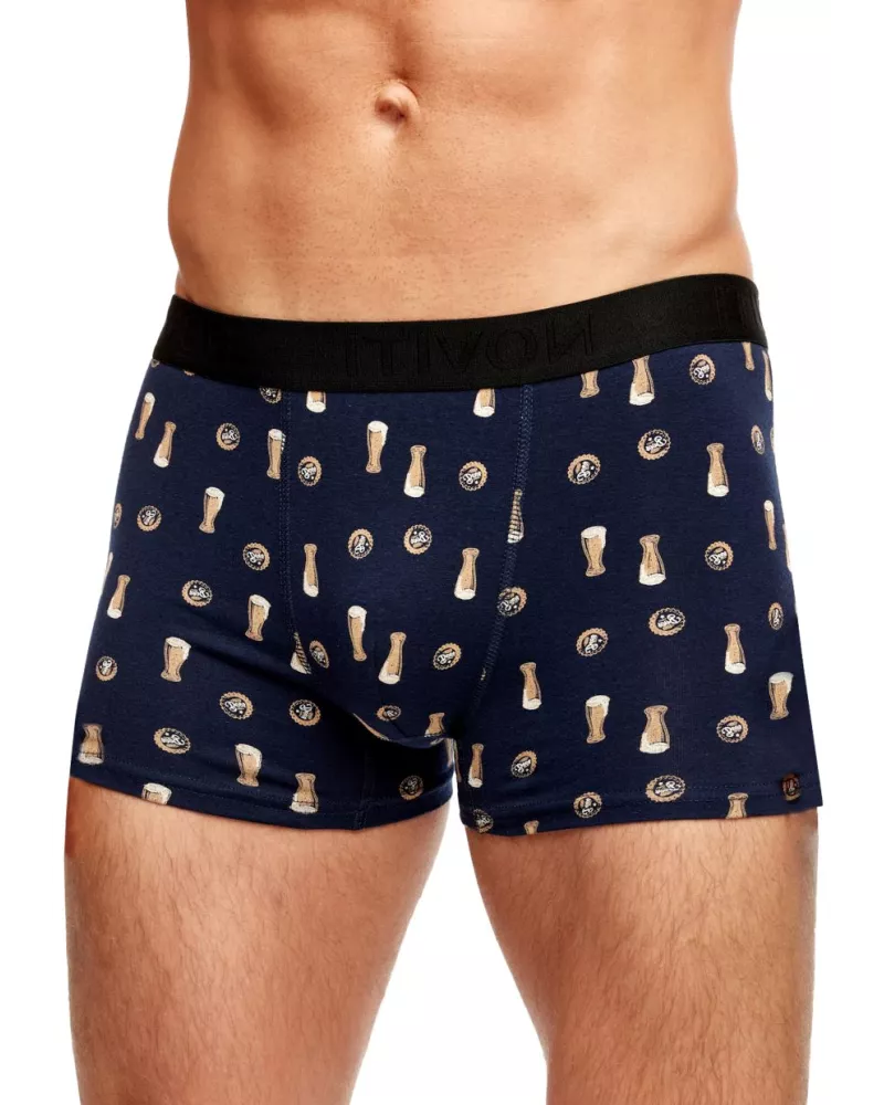 Pánské boxerky BB006/03 granát značky NOVITI představují ideální volbu pro muže, kteří ocení spojení pohodlí a originality. Sytě modrý základ doplňuje hravý potisk pivních půllitrů a uzávěrů, který vnese do každého dne lehkost i špetku humoru. Díky promyšlenému střihu s nohavičkou se boxerky skvěle přizpůsobí postavě a poskytnou maximální komfort při nošení doma i během aktivního dne. Elastická guma s decentním nápisem zajišťuje pevné držení bez nepříjemného zařezávání, zatímco kvalitní bavlněný materiál s příměsí elastanu garantuje příjemný pocit na těle i dlouhou životnost.