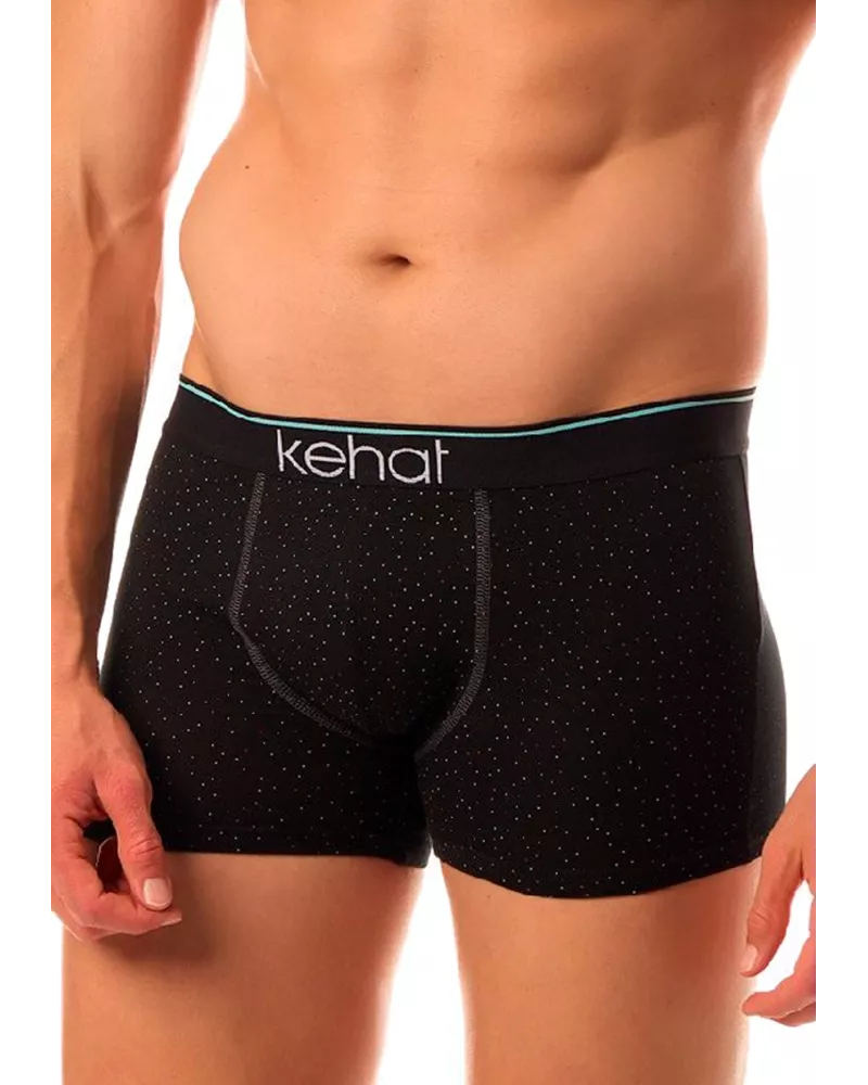 Pánské boxerky 990/12 značky KEHAT představují spojení elegance a pohodlí, které ocení každý moderní muž. Černý základ s jemnými vzory působí decentně, ale zároveň stylově. Měkká a pružná látka zajišťuje příjemný pocit na těle po celý den – kombinace bavlny a elastanu přináší volnost pohybu i perfektní přizpůsobení postavě. Výrazná elastická guma s logem „kehat“ je nejen praktická, ale také dodává spodnímu prádlu osobitý vzhled; tyrkysový detail na pásku podtrhuje svěží charakter tohoto modelu.