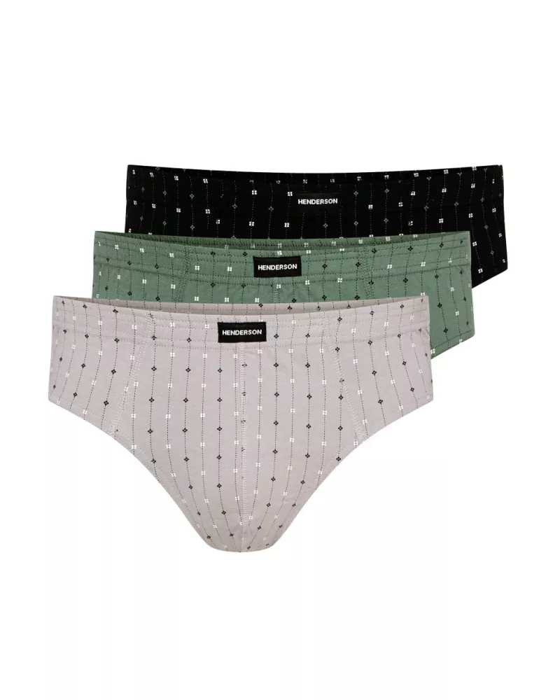 Pánské slipy Classic 1446/K662 značky HENDERSON představují ideální volbu pro muže, kteří hledají elegantní styl a pohodlí každý den. Tento set tří slipů nabízí decentní vzory v černé, khaki a světle šedé barvě, které snadno sladíte s Vaším šatníkem. Díky nižším bokům perfektně padnou pod jakékoli oblečení a poskytnou Vám pocit lehkosti i při celodenním nošení.